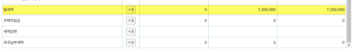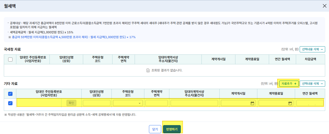 반영하기를 하면 자동으로 월세액 추가가 됩니다.