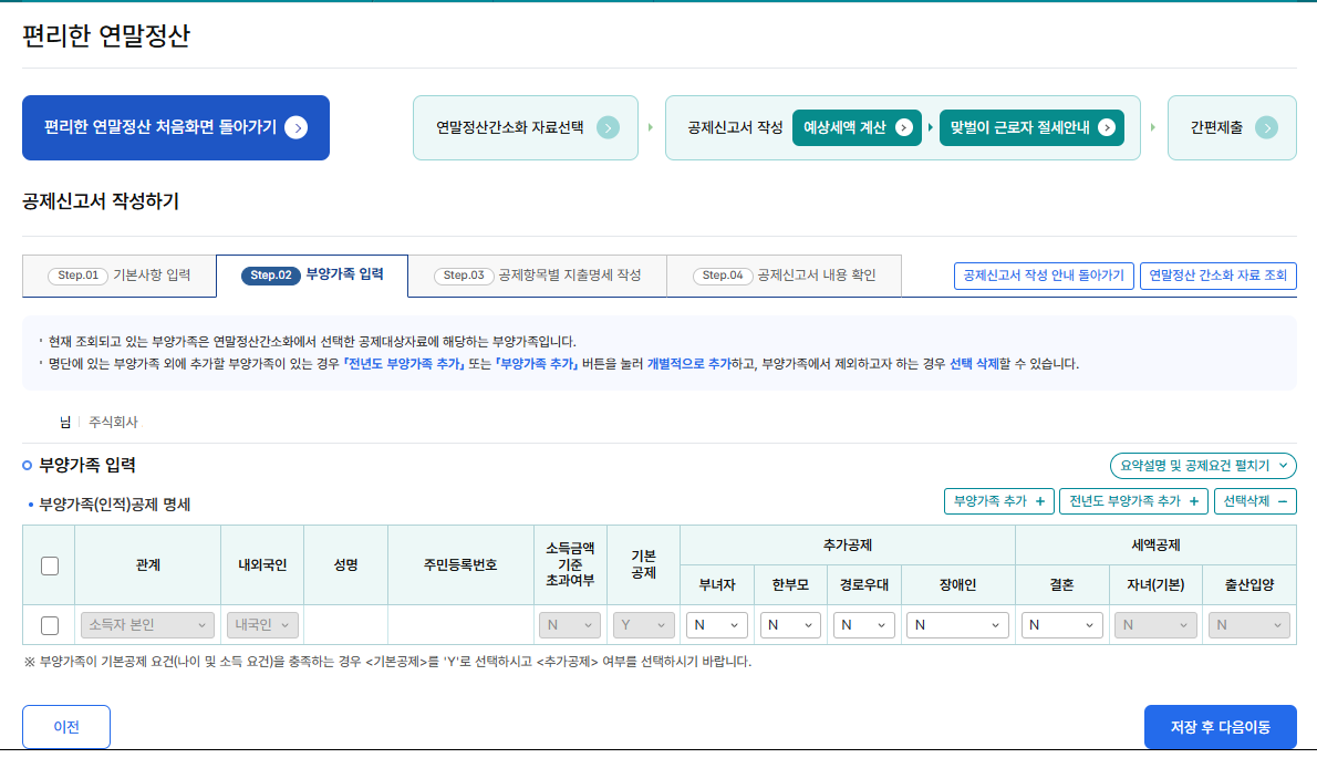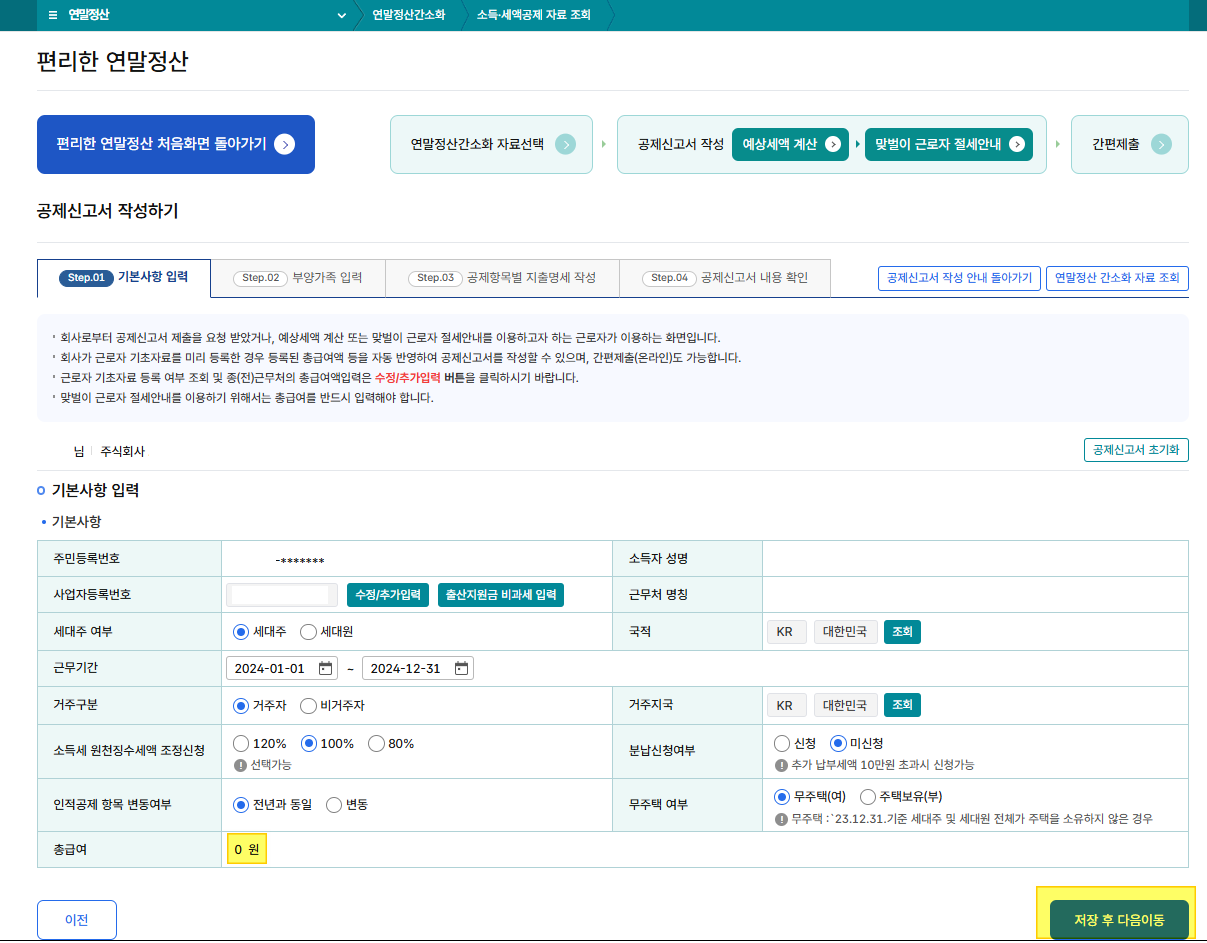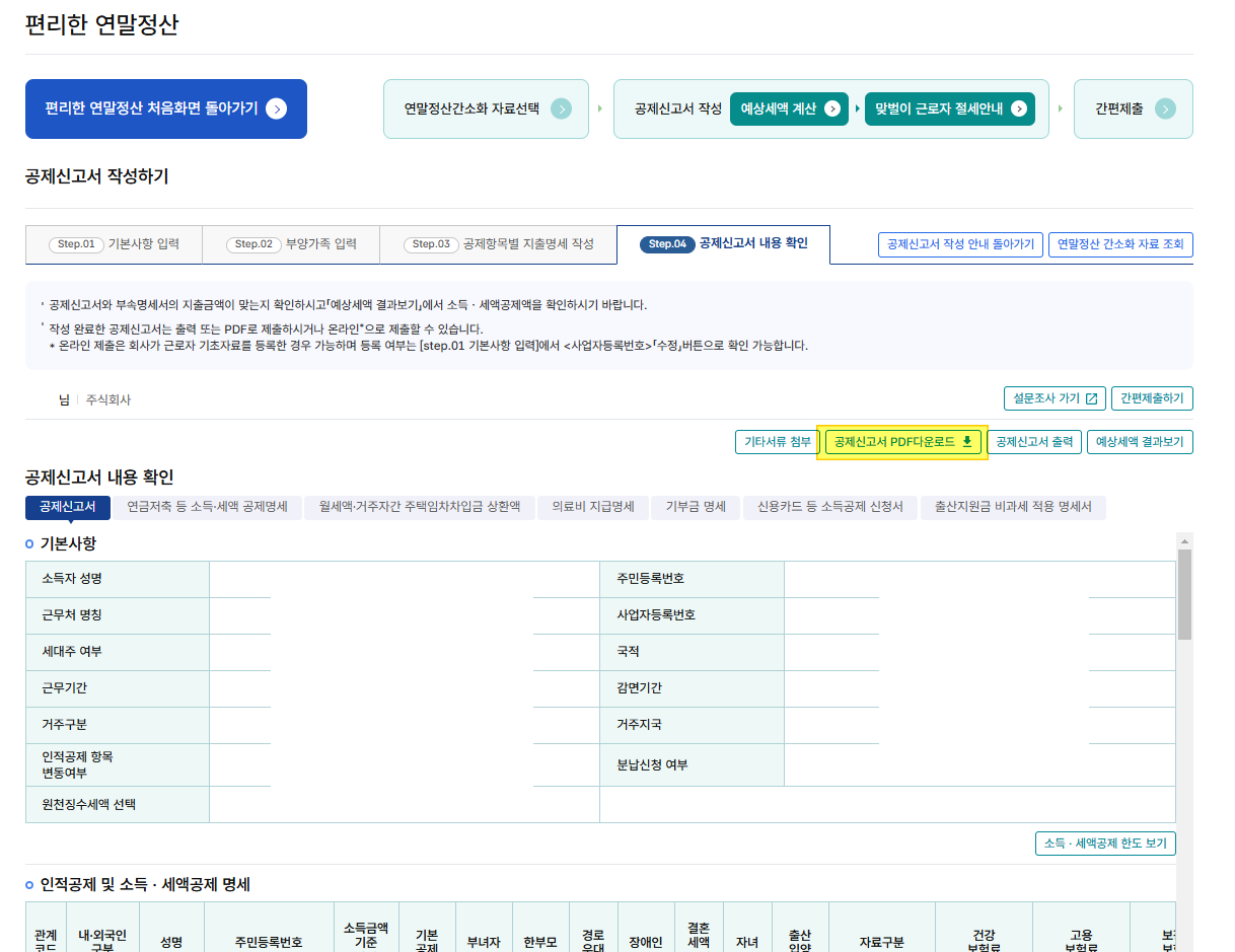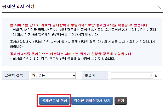 공제신고서작성을 클릭하면 팝업이 하나 뜨는데,