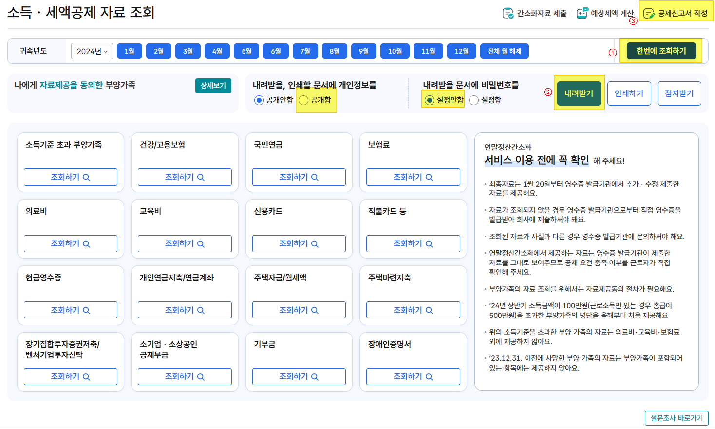 내려받을, 인쇄할 문서에 개인정보를 "공개함"으로 체크한 후 내려받기를 해줍니다.