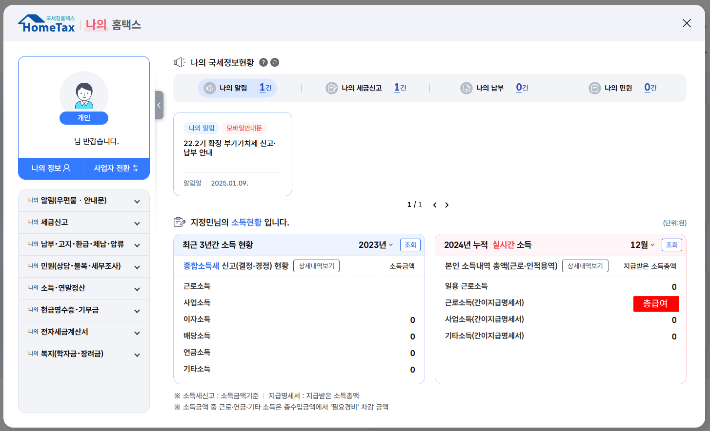 기납부 소득세액(원천징수액)은 홈택스에서 조회가 안돼서