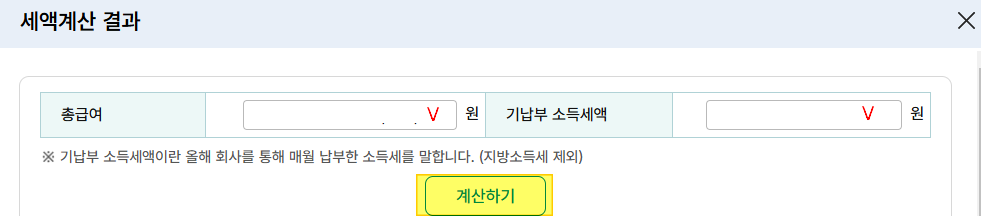 예상세액 결과보기 버튼을 눌러 팝업창을 띄웁니다.