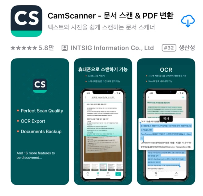 아이폰 스캔어플은 CamScanner 어플 추천합니다.