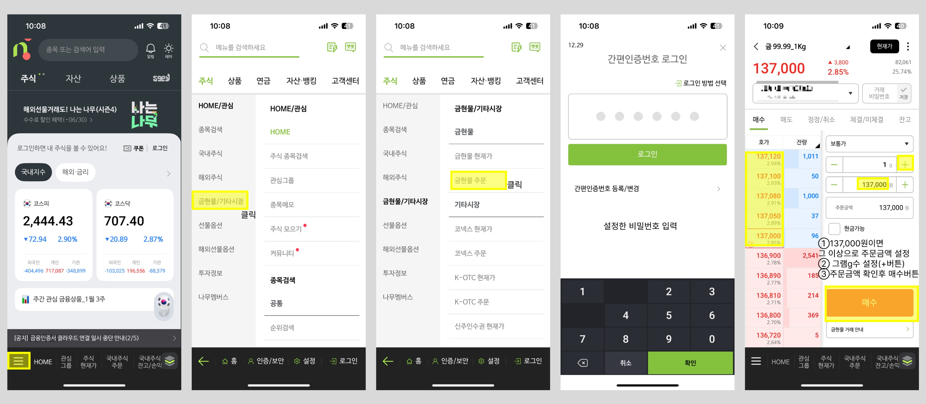 먼저 나무증권을 설치하고 금현물 계좌를 만들어야됩니다.