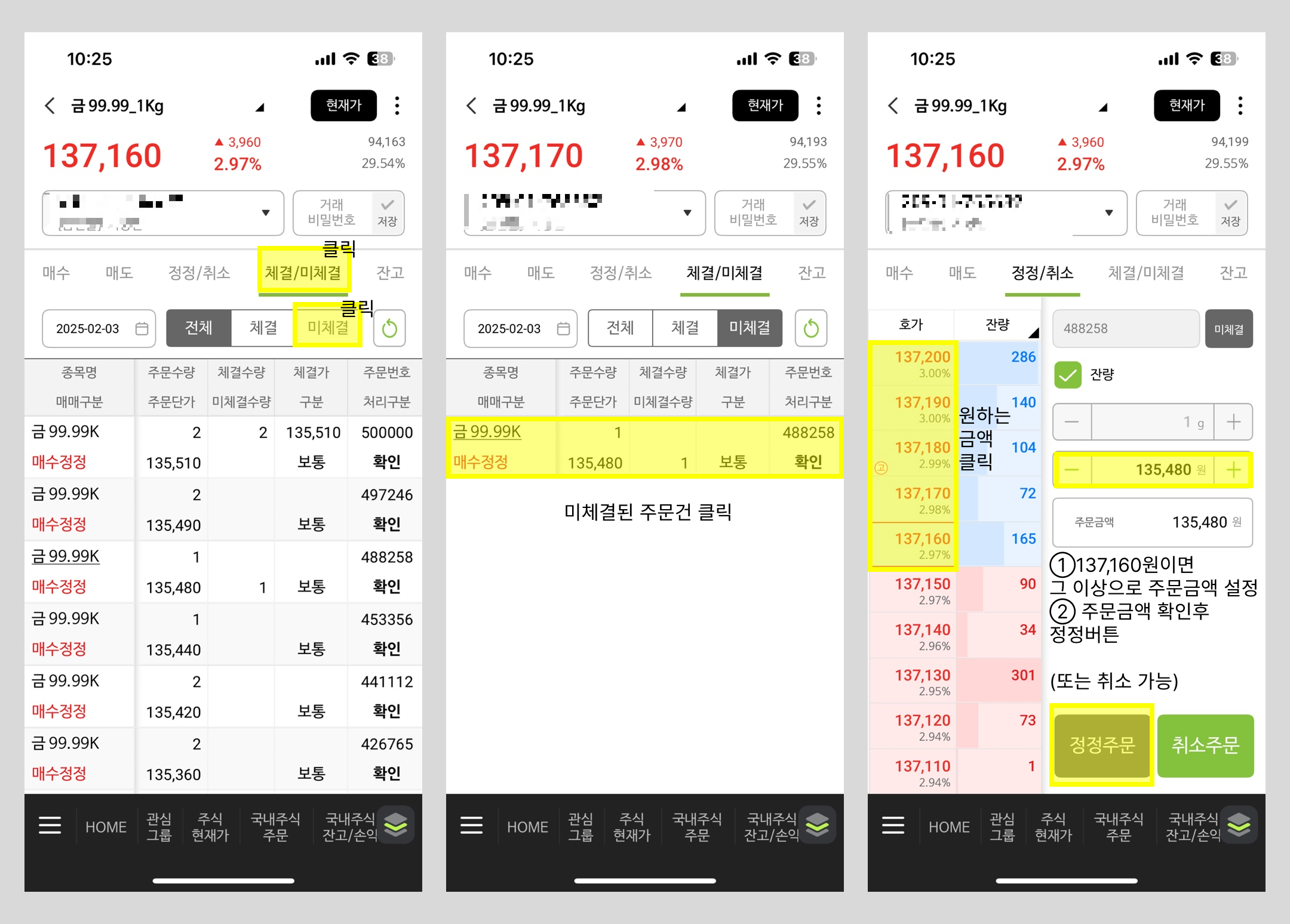 금현물을 매수, 정정 주문하는 방법에 대해
