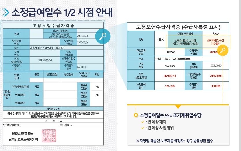 소정급여일수 1/2시점은 조기재취업수당 기준일이므로 잘 확인해두고