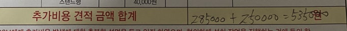 견적서를 보면 추가비용 칼같이 따박따박 추가하심. ㄷㄷ