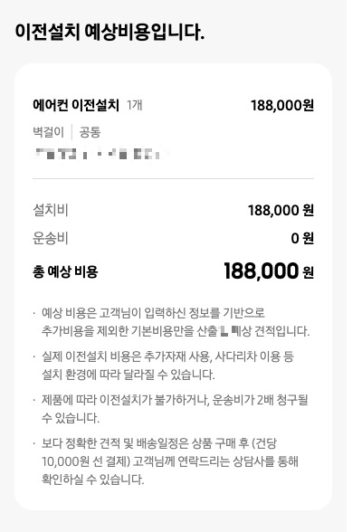 그래서, 보통 벽걸이에어컨 이전설치 총비용이 어느정도 나오냐고 여쭤봄