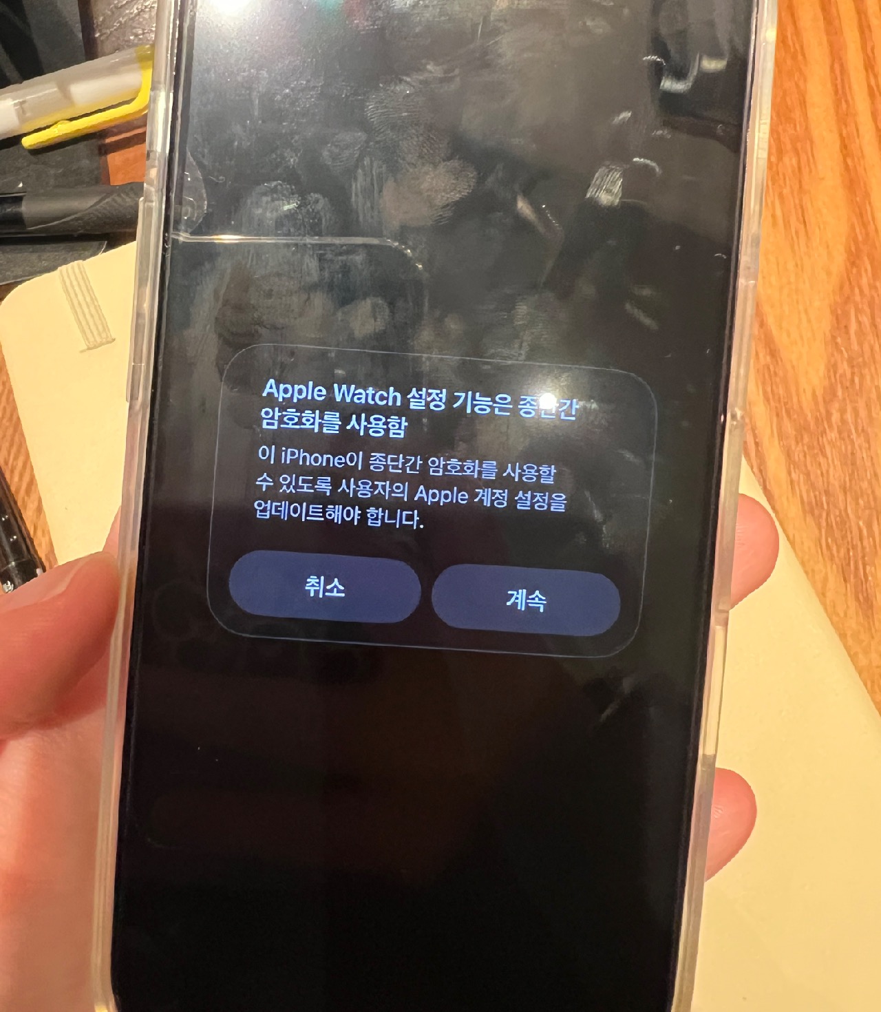 이 iPhone이 종단간 암호화를 사용할 수 있도록 사용자의 Apple 계정 설정을 업데이트 해야합니다.