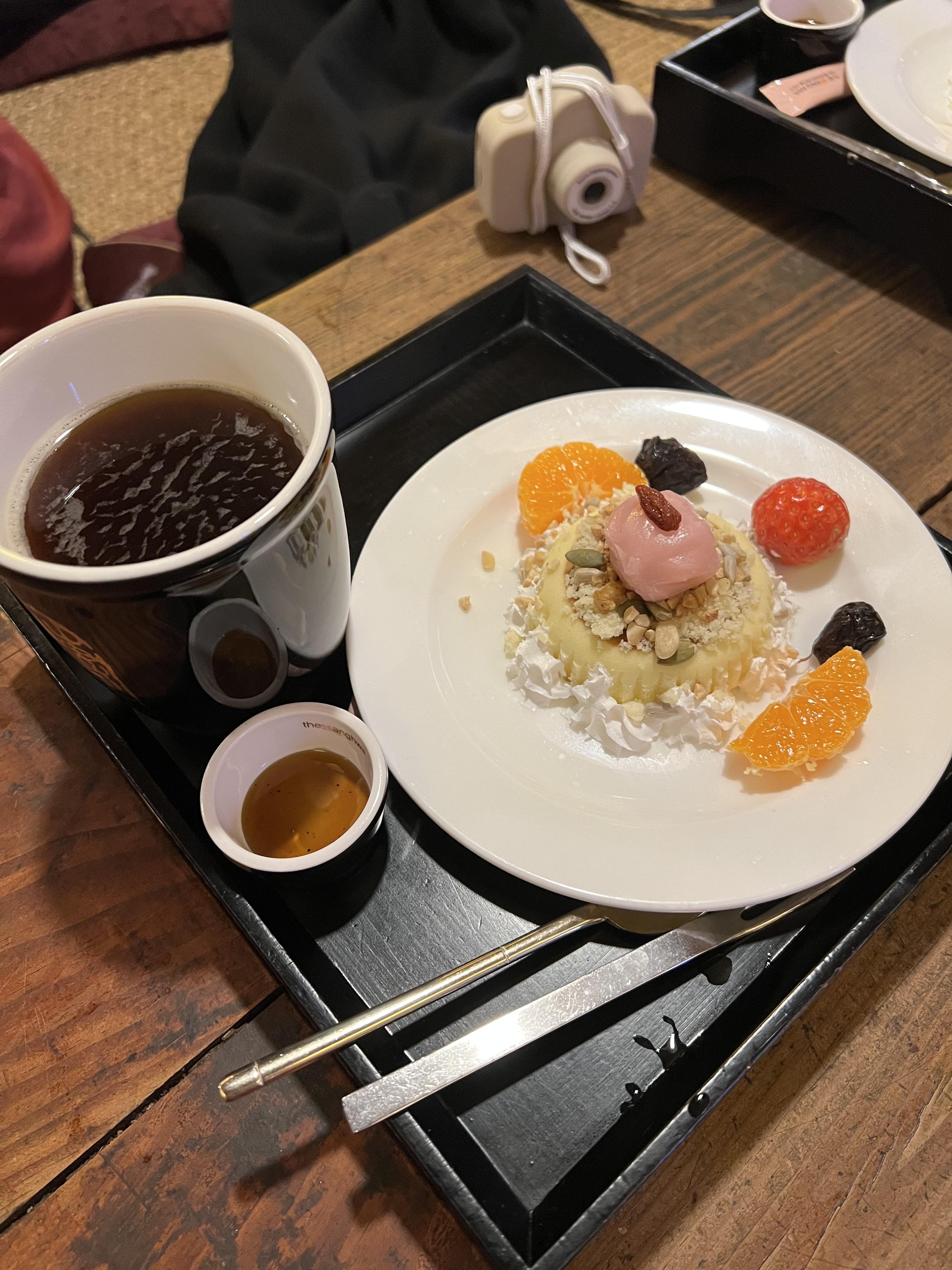 스페셜커피세트 = 아메리카노 + 쌍화꿀 + 과일치즈케이크 + 위장약(환. 소화제라고함)