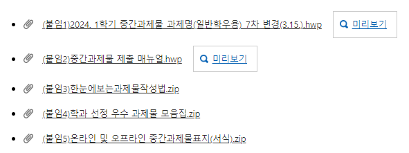 2024년 1학기 중간과제물 전체 학과 확인하기 링크