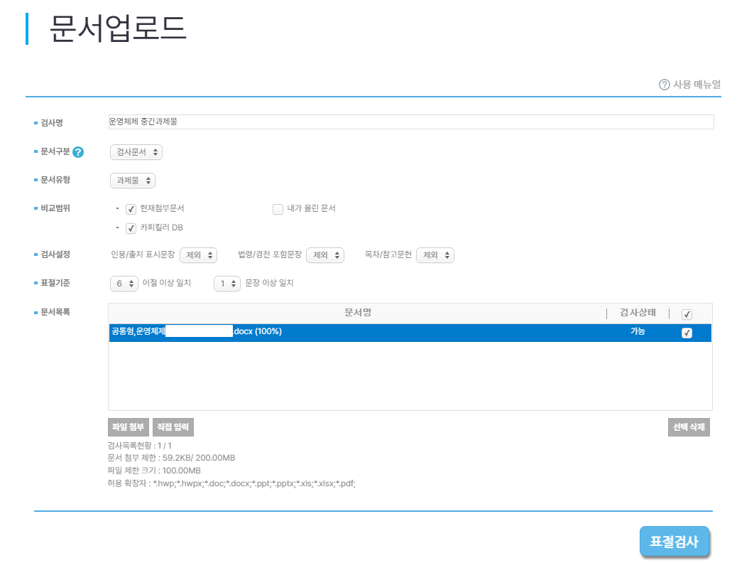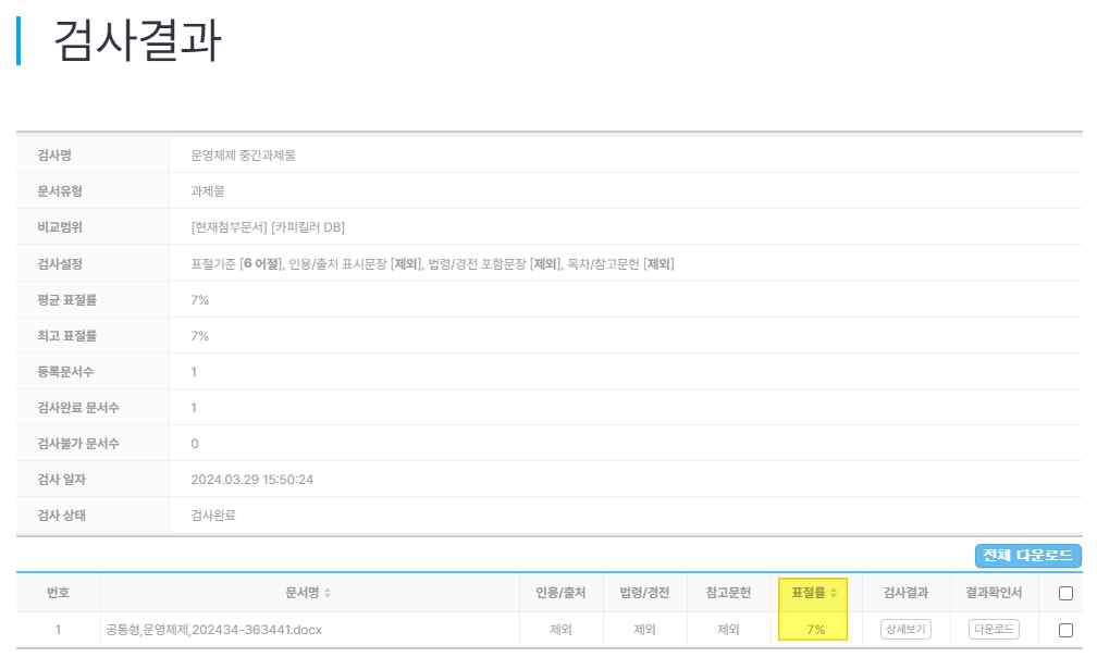 기본셋팅으로 과제물 파일 올려서 표절검사 ㄱㄱ