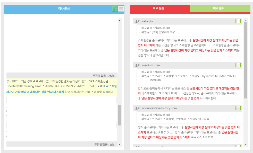 최종적으로 문서화해서 카피킬러에서 표절률을 검사해봤다.