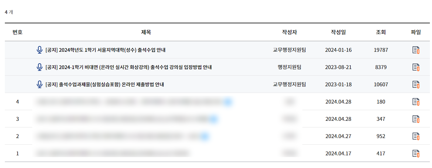 제목으로 과목명 검색도 가능하고(띄어쓰기때문에 단어쪼개서도 검색해보세요)