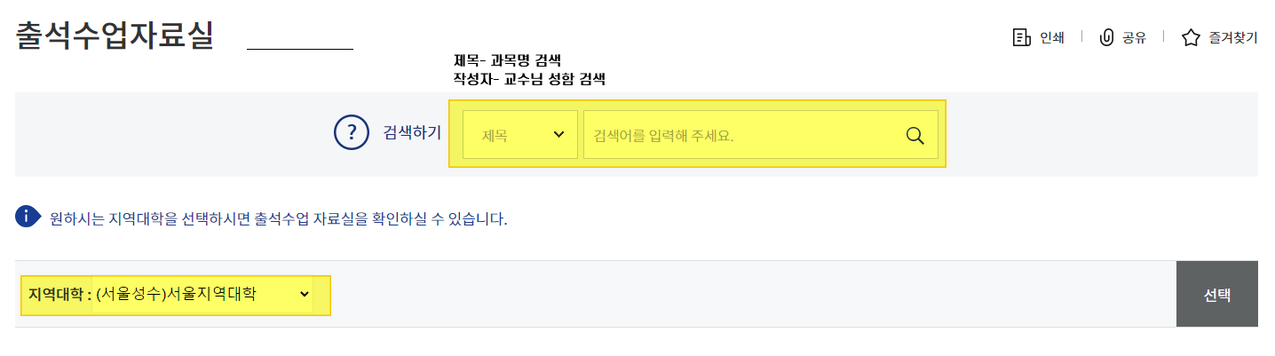 제목으로 과목명 검색도 가능하고(띄어쓰기때문에 단어쪼개서도 검색해보세요)