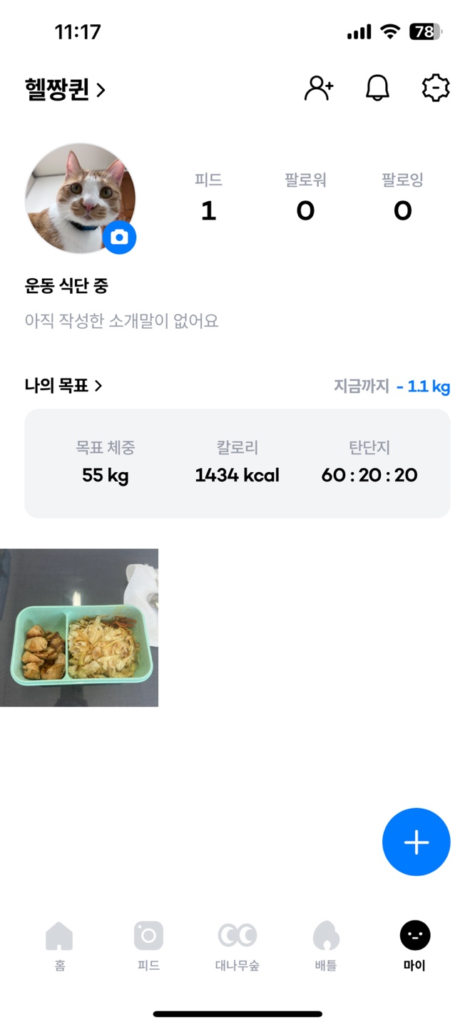 그리고 지금까지 -1.1kg 이 부분이 참 마음에 듦.