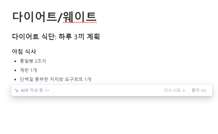 뭔가 다른 추천도 받고싶어서 이번엔 노션AI를 이용해 작성시켰다.