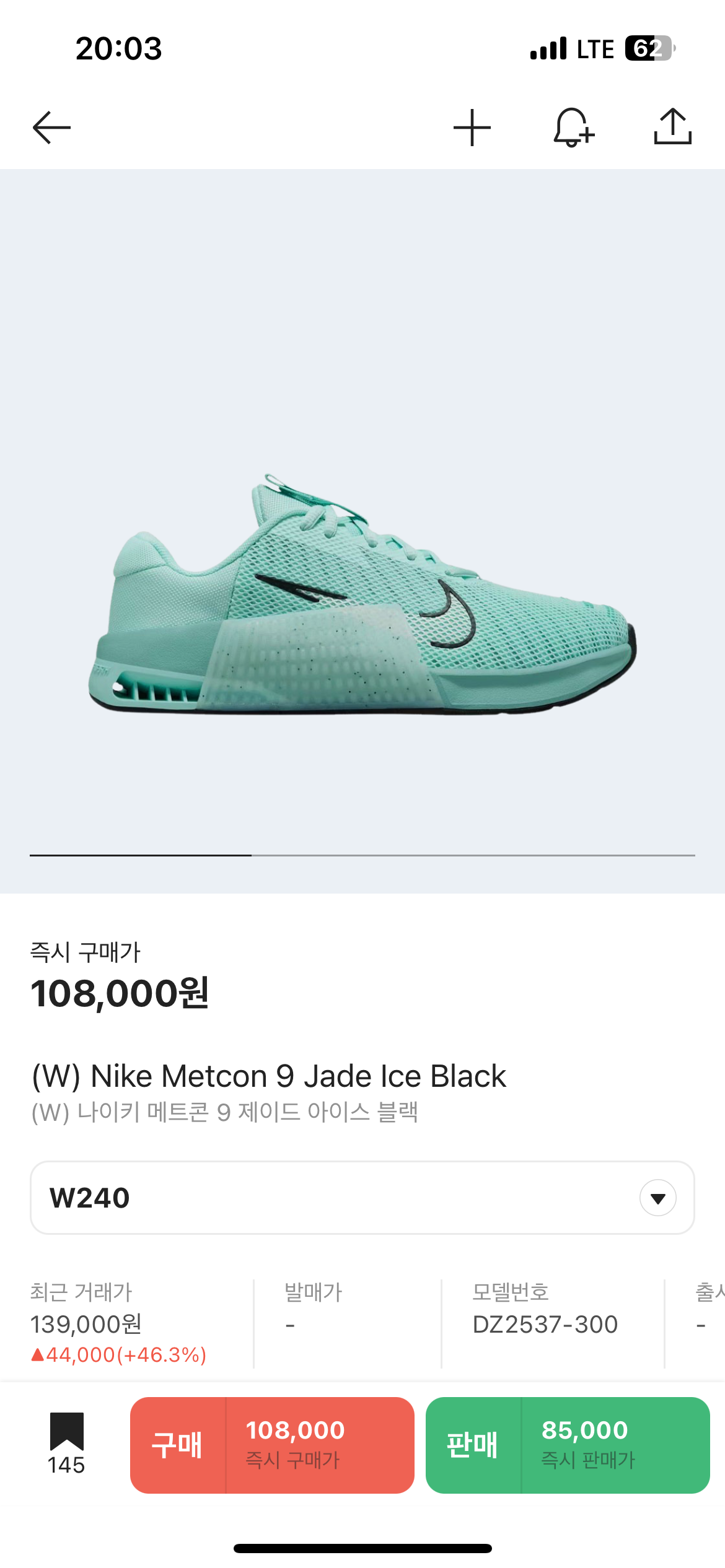 크림에 240사이즈로 가격보고 제이드아이스블랙(민트)로 구매갈겼어요