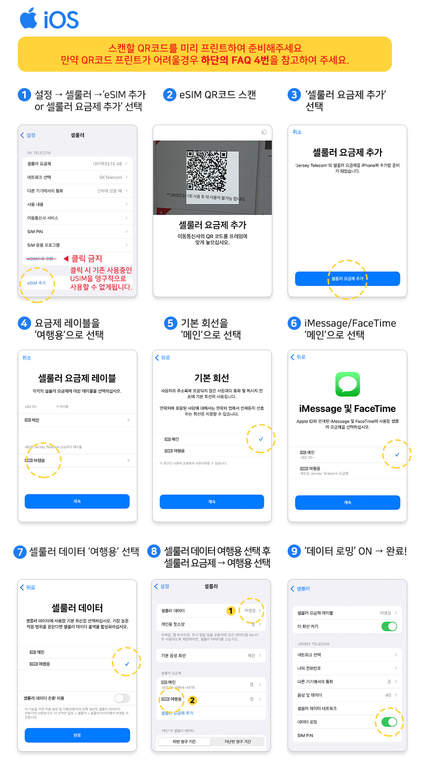 1. 설정 > 셀룰러 > eSIM추가 or 셀룰러 요금제 추가 선택
