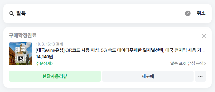 말톡요금제가 무제한에 10일이라 넉넉해서 여행 전날에 미리 이심을 여행용으로 등록했고