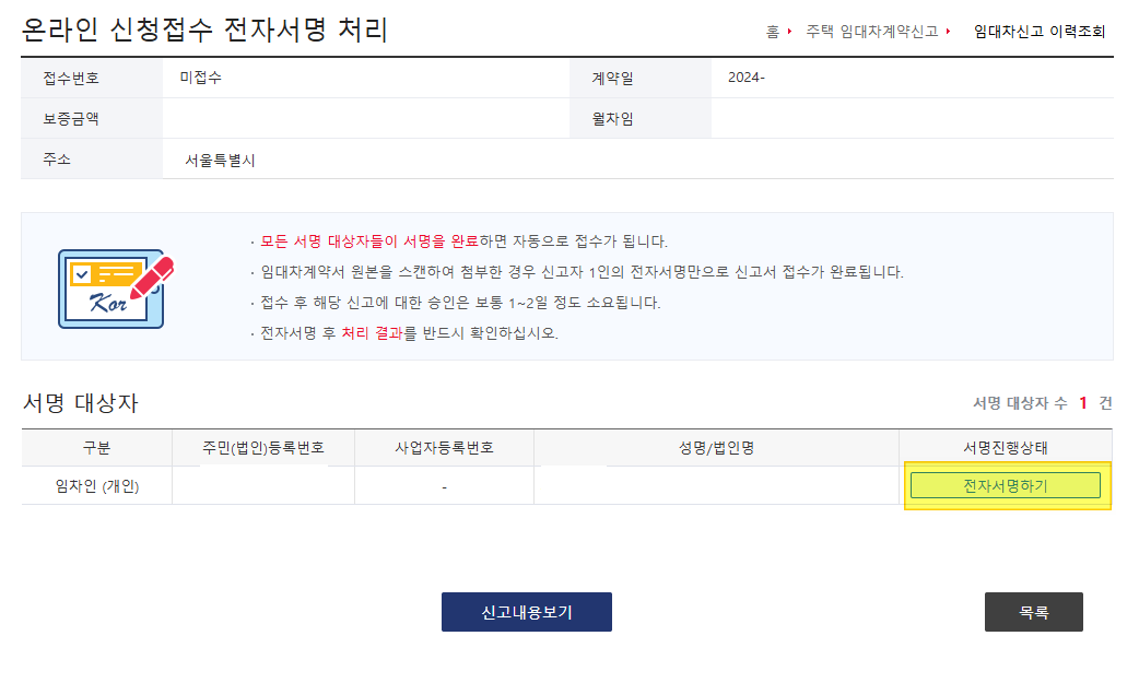 맨 아래 전자서명하기를 눌러준다.