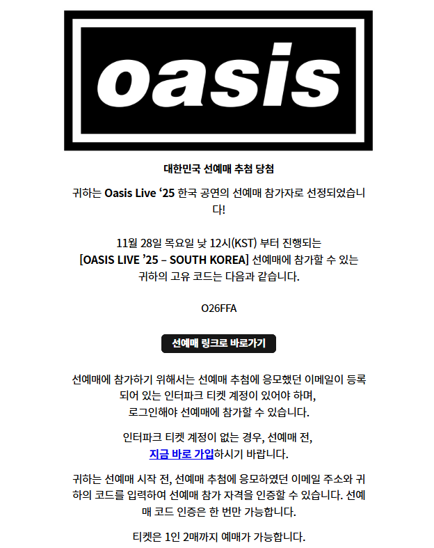 이 이메일은 선예매 추첨에 응모하였던 이메일 주소이다.