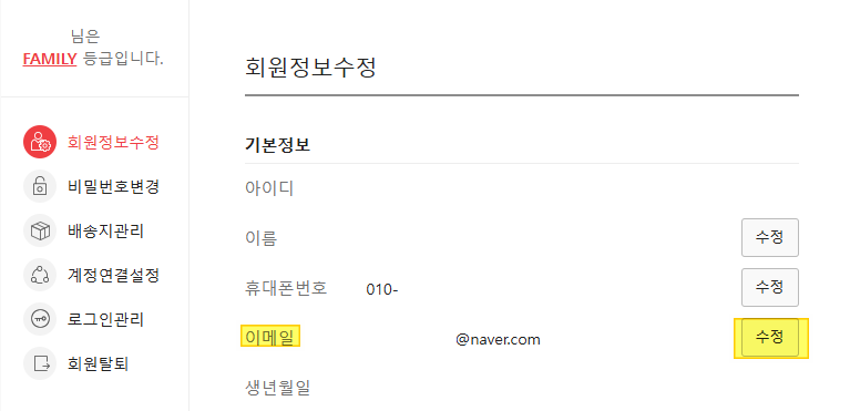 회원정보에서 이메일을 수정하면된다.