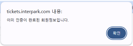 선예매 인증창(폼)에서