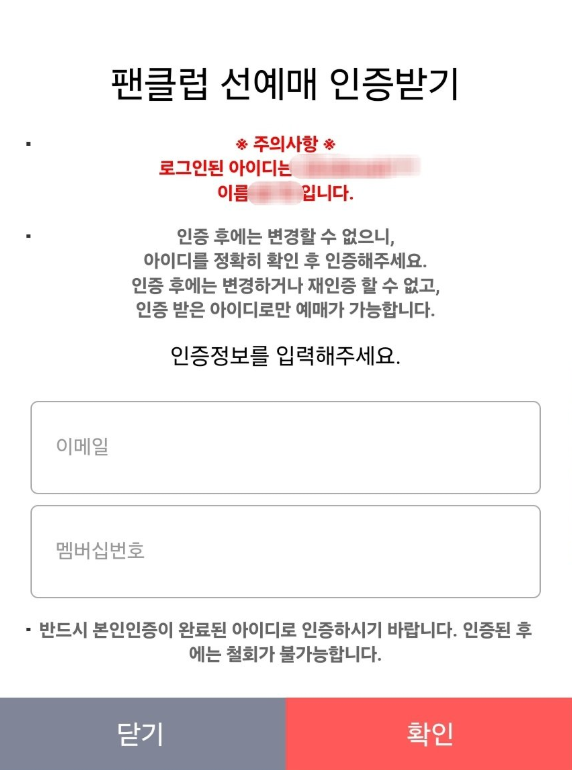 미리 팬클럽 선예매 인증을 해놔야했다.