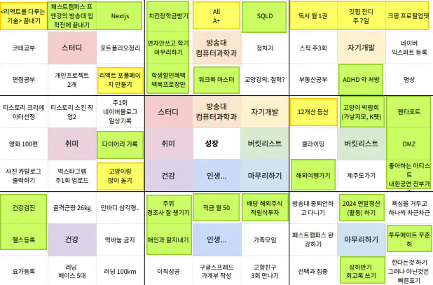 올해 스터디하면서 작성했던 만다라트인데